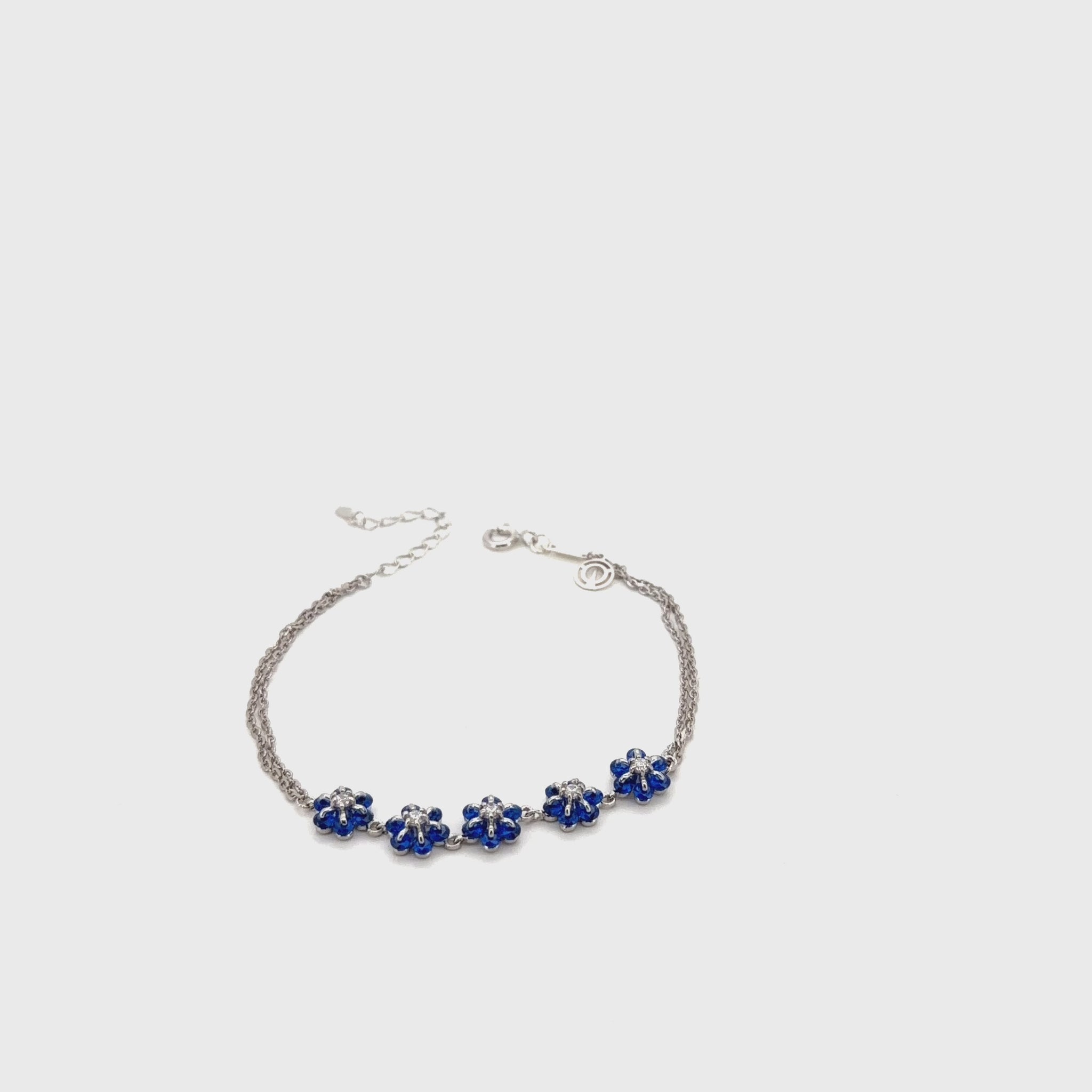 Adorn your wrist with the captivating beauty of our Bluebell Bloom Multi-Chain Bracelet. Expertly crafted from 925 Sterling Silver, this adjustable bracelet features a unique multi-layered chain design. Along one section, a series of five exquisite blue enamel floral motifs are gracefully interspersed. Each flower boasts intricate detailing and a shimmering center, creating a vibrant focal point. The delicate silver chains are intertwined, offering a sophisticated layered look that ensures comfortable wear and adds a touch of playful elegance.