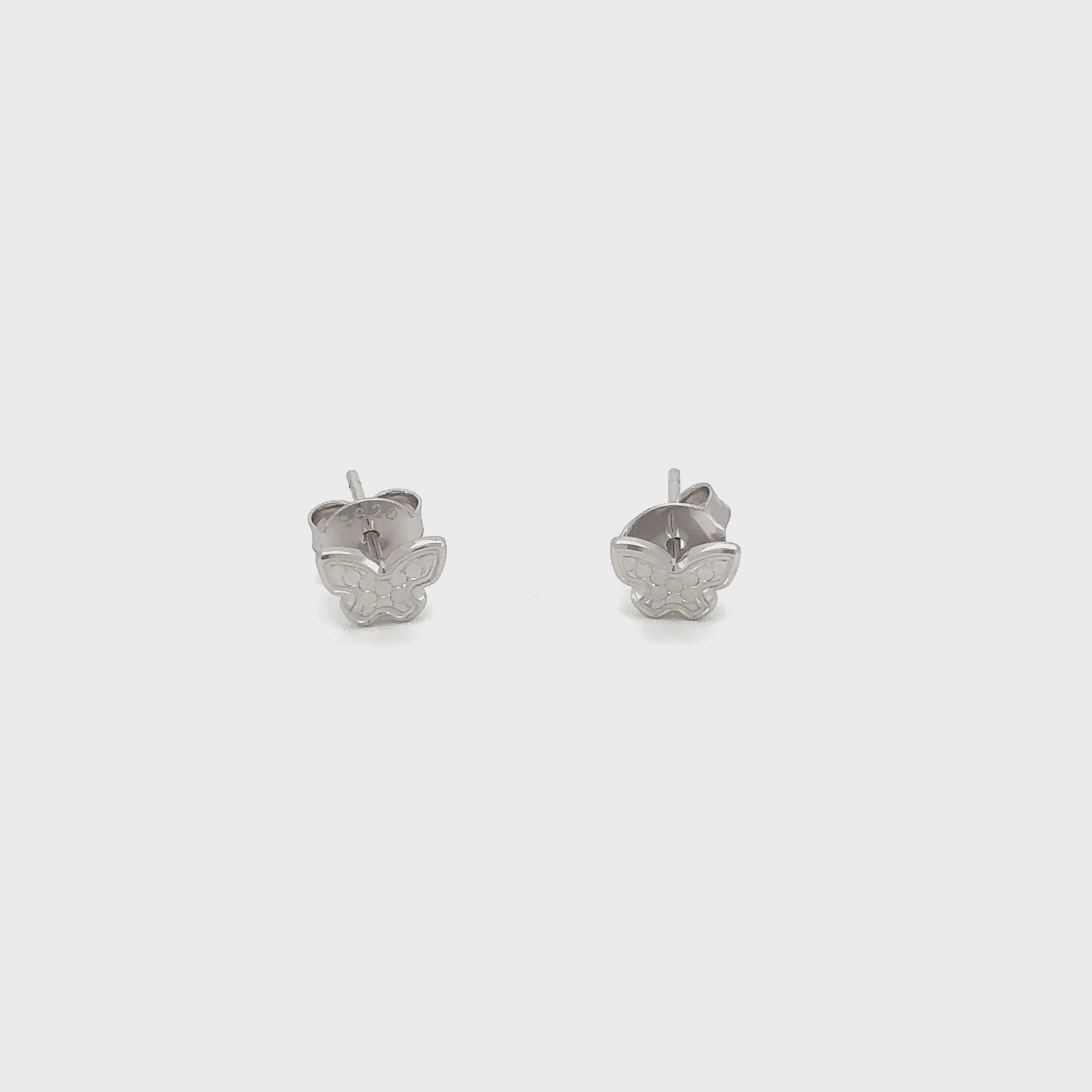 Adorn your ears with the captivating charm of our Graceful Flutter Stud Earrings. Expertly crafted from 925 Sterling Silver, each stud features a beautifully rendered butterfly silhouette. The wings are adorned with a subtle, delicate texture that catches the light with a soft shimmer, mimicking the intricate patterns found in nature. The polished silver outlines define the elegant form, making these studs a charming and sophisticated accessory for any occasion.