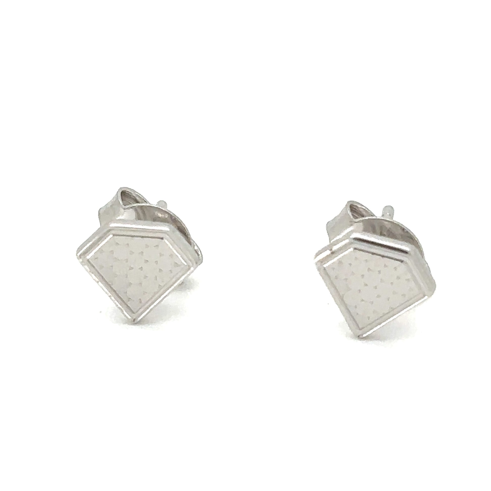 Adorn your ears with the striking elegance of our Modern Prism Stud Earrings. Expertly crafted from 925 Sterling Silver, each stud features a dynamic diamond (rhombus) shape. The outer frame is polished to a sleek shine, while the inner panel boasts a delicate, finely textured pattern that beautifully catches and diffuses light. This thoughtful contrast in finishes creates subtle depth and visual interest, making these studs a versatile and contemporary accessory.