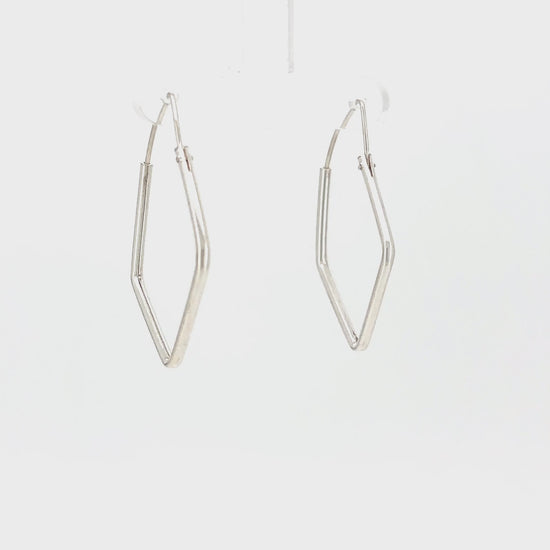 Adorn your ears with the striking silhouette of our Modern Rhombus Hoop Earrings. Expertly crafted from 925 Sterling Silver, these unique earrings feature a sleek, elongated rhombus shape. The polished silver surface reflects light beautifully, emphasizing the distinct angular design. With a lightweight feel and secure closure, they offer a comfortable yet eye-catching alternative to traditional hoops, making a subtle statement of modern elegance.
