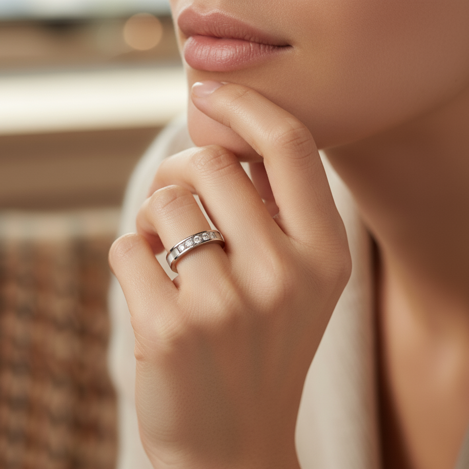The Timeless Sparkle Band is inspired by the enduring essence of classic beauty and understated brilliance. It celebrates the precious moments and everlasting connections that sparkle brightly throughout life's journey.