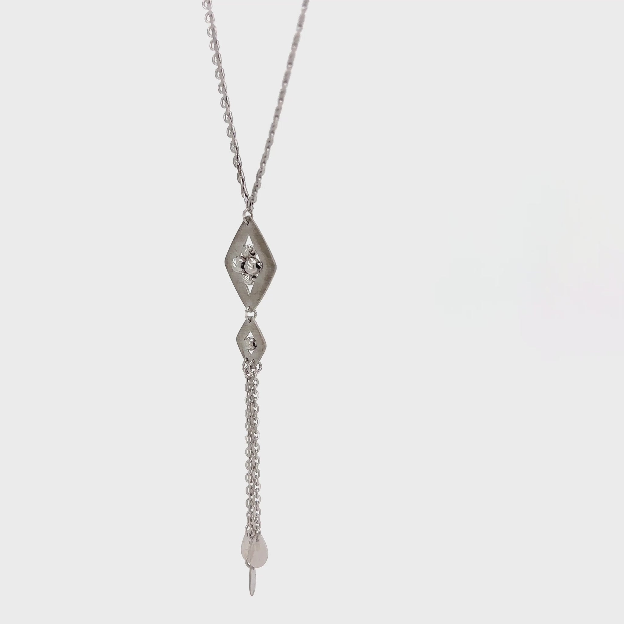 This 925 sterling silver waterfall necklace features a bold diamond shaped pendant with a soft matte finish. The texture gives it a refined and contemporary feel, making it different from overly polished, high shine jewellery.