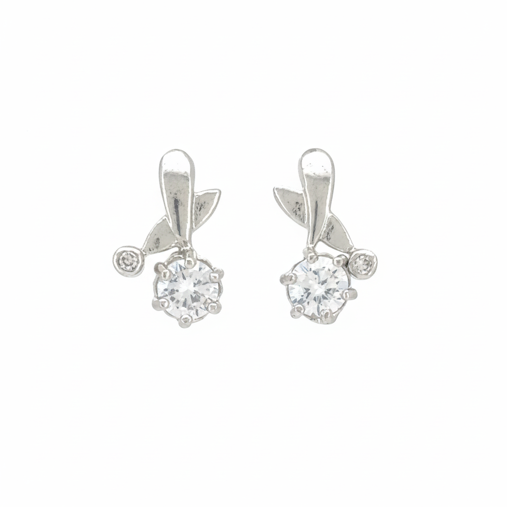 Adorn your ears with the exquisite sparkle of our Whisper Bloom Stud Earrings. Expertly crafted from 925 Sterling Silver, each stud features a brilliant, round-cut center stone, set to maximize its dazzling sparkle. This main stone is elegantly cradled by a graceful, organic silver motif that subtly curves around it, adorned with two tiny accent stones that evoke delicate leaves or nascent petals. The design offers a modern twist on a classic solitaire, creating a refined and captivating look.